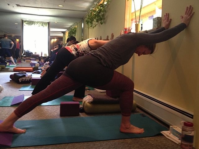 - Tu cadera baja para formar una linea con la espalda y la pierna de atrás