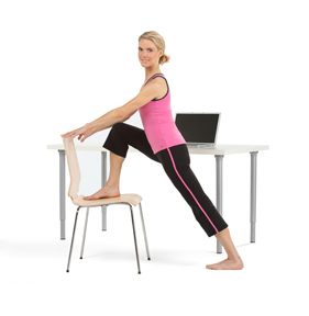 Apoya tus manos en el respaldo, aleja el pie de atras