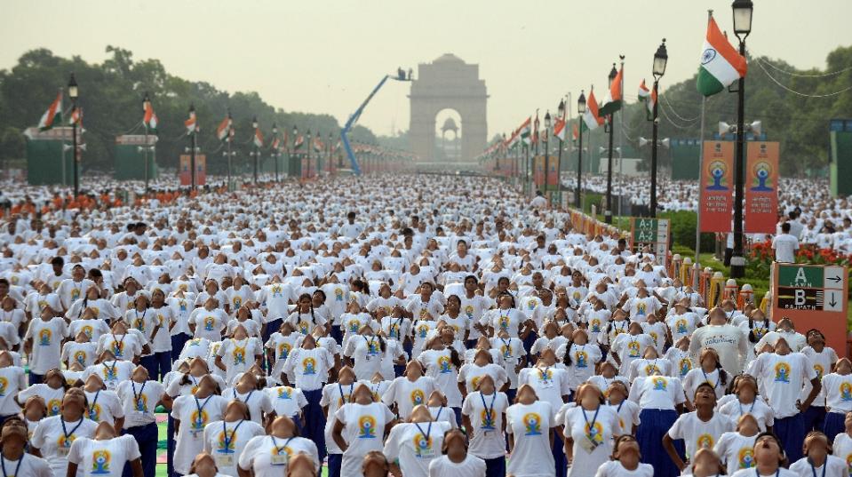Miles de entusiastas se reunieron, incluyendo estudiantes, burócratas y soldados se presentaron desde las 7:00 am del dìa de hoy domingo 21 de junio 2015, para participar en esta celebración que tras diversas negociaciones, Modi logró que Naciones Unidas declarara como Día Internacional del Yoga. En sus palabras apuntó que: