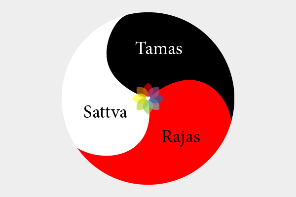 La palabra Guna en sánscrito se traduce de varias formas, todas con la similitud de significar enrollar, que enrolla; es decir, espiral. Estas tres energías que conforman la materia tienen que ver con la existencia misma y por ende se manifiestan claramente en la práctica de ásanas. La energía Tamas es una energía que se manifiesta como inercia, pesadez, resistencia. Rajas es una fuerza de acción, creación, pasión. Sattva es la energía de balance total, es pureza, es armonía.