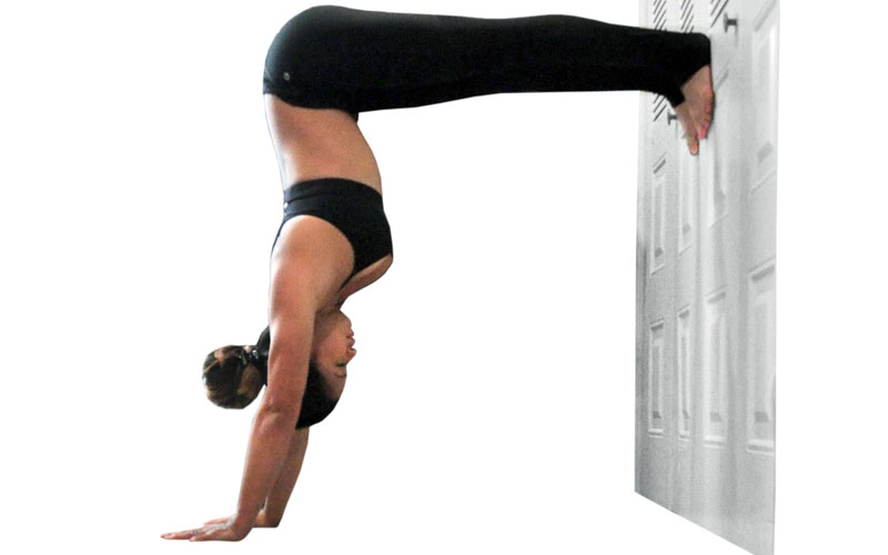 Es muy parecido al tripie, solo que ahora tus manos son la base y tus pies se apoyan en la pared, no en el piso.